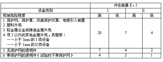 1— 引入點;2—導(dǎo)線分支點;3—密封圈;4—填料 圖3 引入點和分支點圖示 17 旋轉(zhuǎn)電機(jī)的補(bǔ)充規(guī)定 電機(jī)軸伸端驅(qū)動的外風(fēng)扇應(yīng)有風(fēng)扇罩保護(hù),風(fēng)扇罩不視為該電氣設(shè)備的外殼。風(fēng)扇及風(fēng)扇罩應(yīng)符合以下要求。 17. 1 外風(fēng)扇的通風(fēng)孔 旋轉(zhuǎn)電機(jī)的外風(fēng)扇通風(fēng)孔的防護(hù)等級按GB-T4942.1規(guī)定, ——進(jìn)風(fēng)端最低應(yīng)為IP20; ——排風(fēng)端最低應(yīng)為IP10。 立式旋轉(zhuǎn)電機(jī)必須防止垂直落下的異物進(jìn)入通風(fēng)孔。Ⅰ類旋轉(zhuǎn)電機(jī),當(dāng)通風(fēng)孔的結(jié)構(gòu)和布置使大于12.5mm的異物不能垂直墜落或振動進(jìn)入到電機(jī)的轉(zhuǎn)動部件上時,采用防護(hù)等級IP10即滿足要求。 17.2 通風(fēng)系統(tǒng)的結(jié)構(gòu)和安裝 風(fēng)扇、風(fēng)扇罩和通風(fēng)孔擋板的抗沖擊能力應(yīng)符合23.4.3.1和23.4.3.3的規(guī)定。 17.3 通風(fēng)系統(tǒng)中的間隙 在正常工作狀態(tài)下,外風(fēng)扇、風(fēng)扇罩、通風(fēng)孔擋板和它們的緊固零件相互間的距離最小為風(fēng)扇最大直徑的1/100,且不小于1mm,不必超過5mm。當(dāng)有關(guān)零件經(jīng)過機(jī)械加工時,此距離允許縮小到1mm。 17.4 外風(fēng)扇及風(fēng)扇罩材料 17.4.1 旋轉(zhuǎn)電機(jī)用的外風(fēng)扇,按第23.4.7.8規(guī)定的方法測得的電阻,不得超過1GΩ,但風(fēng)扇旋轉(zhuǎn)線速度小于50m/s的Ⅱ類電機(jī)除外。 17.4.2 制造廠給出的塑料使用溫度高于風(fēng)扇額定運行最高溫度20K(在額定范圍內(nèi)),則認(rèn)為該塑料的熱穩(wěn)定性是合格的。 17.4.3 旋轉(zhuǎn)電機(jī)用含輕金屬制造的外風(fēng)扇,應(yīng)符合8.1或8.3的規(guī)定。 18 開關(guān)的補(bǔ)充規(guī)定 18. 1 觸頭式開關(guān)不允許浸在可燃性絕緣油中。 18. 2 隔離開關(guān)(不允許在額定負(fù)載時操作)應(yīng)與負(fù)荷斷路裝置在電氣或機(jī)械上聯(lián)鎖。 對于Ⅱ類設(shè)備可在隔離開關(guān)執(zhí)行機(jī)構(gòu)旁加“嚴(yán)禁帶負(fù)荷操作”的警告牌。 18.3 開關(guān)柜設(shè)有隔離開關(guān)時,隔離開關(guān)操作位置必須分明,設(shè)置上應(yīng)能清楚地顯示出隔離開關(guān)的接觸位置或可靠地顯示出斷開位置(詳見IEC60947-1),這個隔離開關(guān)和開關(guān)柜的蓋板或門之間的每個聯(lián)鎖都應(yīng)保證只有當(dāng)隔離開關(guān)的觸頭完全切斷時,蓋板和門才有可能打開。 18.4 Ⅰ類開關(guān)柜的隔離開關(guān)操縱機(jī)構(gòu)在其斷開位置時,應(yīng)借助一個扣鎖鎖住。 18.5 如果Ⅰ類開關(guān)柜具有短路故障和接地故障的繼電器保護(hù),則繼電器動作后應(yīng)鎖定。如果開關(guān)柜具有能從殼外進(jìn)行就地復(fù)位裝置時,則復(fù)位裝置的蓋應(yīng)采用9.2的特殊緊固件。 18.6 外殼內(nèi)帶遙控電路的電路接點若受非手動操作(例如電的、機(jī)械的、磁的、光電的、氣動的、液壓的、聲學(xué)的、熱的作用)而使電路接通或斷開時,那么外殼的門和蓋應(yīng)符合以下規(guī)定: a) 與隔離開關(guān)聯(lián)鎖,除非內(nèi)部的非保護(hù)電路已斷開; b) 或者設(shè)置“嚴(yán)禁帶電開蓋”的警告牌。 在上述a)的情況下,如果在隔離開關(guān)斷開后仍有一些內(nèi)部元件帶電時,為了減少維護(hù)人員的危險,帶電元件應(yīng)采用以下保護(hù)方式之一: 1)1.2規(guī)定的防爆型式; 2)下列防護(hù)措施: ——電氣間隙、爬電距離符合GB3836。3增安型“e”的規(guī)定;并且 ——內(nèi)部有一附加殼體把帶電件保護(hù)在內(nèi),該殼體防護(hù)等級至少為GB4208的IP20,且工具不能通過開口直接接觸帶電件; ——內(nèi)部增設(shè)“嚴(yán)禁帶電開蓋”的警告牌。 19 熔斷器的補(bǔ)充規(guī)定 有熔斷器的外殼應(yīng)設(shè)聯(lián)鎖裝置,僅在電源斷電時才能安裝或更換內(nèi)部元件,并且在外殼可靠關(guān)合后熔斷器方能帶電;蛘咴鲈O(shè)“嚴(yán)禁帶電開蓋”的警告牌。 20 插接裝置的補(bǔ)充規(guī)定 20.1 插接裝置應(yīng)符合下列要求之一: a) 用機(jī)械、電氣或其他方法聯(lián)鎖,在帶電條件下,插接裝置不能斷開,當(dāng)斷開時插頭不得帶電。 b) 用9.2特殊緊固件連接在一起,并增設(shè)“嚴(yán)禁帶電斷開”的警告牌。在與電池連接的情況下,如斷開前不能斷電,則警告標(biāo)志應(yīng)為“只允許在非危險場所斷開”。 20.2 額定電流在10A以內(nèi),交流額定電壓在250V或直流電壓在60V以內(nèi)時,插接裝置如果符合以下全部要求,則不必符合20.1的規(guī)定: ——插座接在電源側(cè); ——插頭與插座分離前有滅弧延遲時間; ——在滅弧期間插頭插座應(yīng)符合GB3836.2隔爆型“d”的規(guī)定; ——分開后的帶電件應(yīng)符合1.2所規(guī)定的任一防爆型式。 20.3 嚴(yán)禁未插入插座的插頭元件帶電。 21 燈具的補(bǔ)充規(guī)定 21.1 燈具中的光源應(yīng)有透明保護(hù)罩,該透明保護(hù)罩可由網(wǎng)孔小于50mm×50mm的保護(hù)網(wǎng)來保護(hù),如果網(wǎng)孔超過50mm×50mm則認(rèn)為該燈具無保護(hù)。 透明罩和保護(hù)網(wǎng)應(yīng)經(jīng)受23.4.3.1規(guī)定的試驗。 燈具的安裝不應(yīng)僅靠一個螺釘。用吊環(huán)安裝時,吊環(huán)可作為燈具
