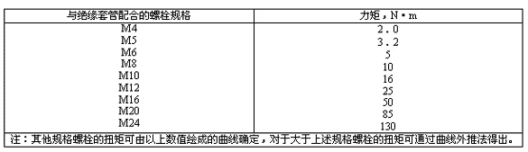 每次試驗前應(yīng)檢查沖擊頭表面是否良好。 試驗通常是在一個完全裝配好的并可投入使用的電氣設(shè)備上進(jìn)行。但是如果這樣試驗對透明零件是不可能時,則應(yīng)將透明件裝在它本身的或類似的支架上進(jìn)行試驗。制造廠和檢驗單位協(xié)商同意,允許在空外殼上進(jìn)行試驗。 玻璃透明件應(yīng)在三個樣品上進(jìn)行試驗,每個樣品只試驗一次,其他零件應(yīng)在二個樣品上進(jìn)行試驗,每個樣品在兩個不同位置各進(jìn)行一次試驗。 采用機(jī)械危險程度等級低的沖能進(jìn)行試驗的電氣設(shè)備,(應(yīng)按27.2中9)用符號X標(biāo)明。 沖擊點應(yīng)是檢驗單位認(rèn)為最薄弱的部位,電氣設(shè)備應(yīng)安裝在一個合適的鋼制基座上,當(dāng)被試表面是平面時,沖擊方向垂直于這個平面,當(dāng)被試表面不是平面時,沖擊方向應(yīng)垂直于沖擊點所接觸的切平面;馁|(zhì)量最少應(yīng)有20kg,采用剛性固定或埋在地中(如澆注混凝土)。相應(yīng)的試驗裝置示例見附錄G。 通常試驗環(huán)境溫度為(20±5)℃,當(dāng)材料性能數(shù)據(jù)說明其在低溫下抗沖擊性能降低時,試驗應(yīng)在規(guī)定溫度范圍的最低溫度下進(jìn)行。 當(dāng)電氣設(shè)備的外殼或外殼部件為塑料材料時,包括旋轉(zhuǎn)電機(jī)的塑料風(fēng)罩和擋風(fēng)板,根據(jù)23.4.7.1規(guī)定試驗應(yīng)在上限溫度和下限溫度下進(jìn)行。 23.4.3.2 跌落試驗 攜帶式電氣設(shè)備除了進(jìn)行23.4.3.1的沖擊試驗外,還應(yīng)在使用狀態(tài)下從1m高跌落到水平的混凝土的平坦表面上四次,樣品的跌落位置由檢驗單位確定。 非塑料外殼設(shè)備試驗應(yīng)在(20±5)℃溫度下進(jìn)行,當(dāng)材料性能數(shù)據(jù)說明其在低溫下抗沖擊性能降低時,試驗應(yīng)在規(guī)定溫度范圍的最低溫度下進(jìn)行。 當(dāng)電氣設(shè)備的外殼部件為塑料時,試驗應(yīng)按23.4.7.1規(guī)定的下限環(huán)境溫度進(jìn)行。 23.4.3.3 試驗要求 沖擊試驗和跌落試驗不應(yīng)引起影響到電氣設(shè)備防爆型式的任何損壞。 表面損傷、表面涂漆損壞、電氣設(shè)備散熱片和其他類似部分的破裂和小的凹陷都可以不考慮。 外風(fēng)扇的保護(hù)罩和通風(fēng)孔的擋板經(jīng)受試驗后,應(yīng)不產(chǎn)生位移或變形,以免引起與運動部分磨擦。 23.4.4 外殼防護(hù)等級的試驗 試驗程度和驗收標(biāo)準(zhǔn)按照GB4208的規(guī)定進(jìn)行,但旋轉(zhuǎn)電機(jī)應(yīng)按照GB-T4942.1的規(guī)定。 當(dāng)制造廠驗收規(guī)范(如有關(guān)的產(chǎn)品標(biāo)準(zhǔn))比GB4208或GB-T4942.1更嚴(yán)格時,當(dāng)其不影響防爆性能時亦可使用。 符合GB4208標(biāo)準(zhǔn)的設(shè)備應(yīng)按標(biāo)準(zhǔn)12.4的第一種類型外殼進(jìn)行試驗。 按照GB4208被試驗設(shè)備不允許帶電。 按照GB4208第11.3b)進(jìn)行絕緣性能試驗時,試驗電壓有效值為(2UN+1000)×(100±10)%V,施壓時間為10~12s,這里UN為設(shè)備的最大額定電壓。 如果某一爆炸性氣體環(huán)境用電氣設(shè)備的標(biāo)準(zhǔn)對防護(hù)試驗有了驗收規(guī)定時,則應(yīng)該用此標(biāo)準(zhǔn)規(guī)定代替GB4208或GB-T4942.1。 GB-T4942.1的驗收規(guī)定用于旋轉(zhuǎn)電機(jī)時,除符合防爆標(biāo)準(zhǔn)外,還應(yīng)符合其正常運行條件的要求。 23.4.5 絕緣套管扭轉(zhuǎn)試驗 連接件的絕緣套管在連接或拆卸時導(dǎo)體會受到扭矩作用,因此絕緣套管應(yīng)經(jīng)受扭轉(zhuǎn)試驗,在安裝中導(dǎo)電桿承受表5的力矩作用時,導(dǎo)電桿和絕緣套管都不允許轉(zhuǎn)動。 表5 絕緣套管試驗力矩